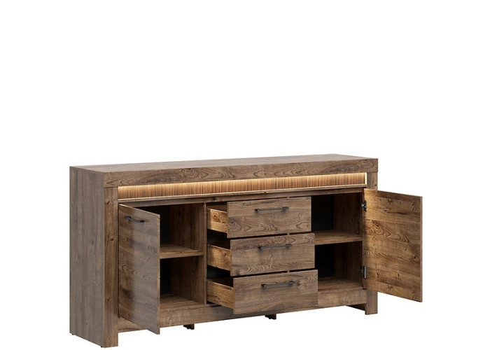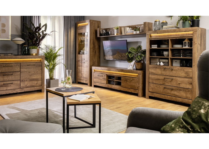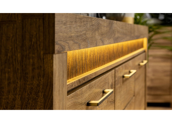 Majestátny a nadčasový dizajn kolekcie TORIN stanovuje nový trend v interiéroch. Ak sa Vám páčia zosilnené boky, pevné kovové rukoväte a intenzívne tmavá farba nábytku, tak získate, po čom túžite. LED osvetlenie umiestnené pod vrchnou doskou kladie dôraz na unikátny štýl. Oceníte aj tiché zatváranie dvierok a zásuviek.