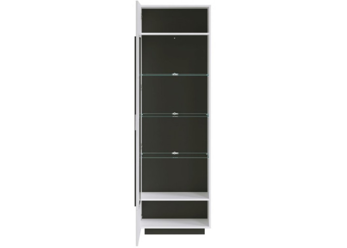 MARILLA je biely lesklý nábytok, pre ktorý sú charakteristické jemne vystupujúce čierne rámy, ktoré sú podsvietené LED svetlom. Štýlové vitríny sú miestom na vystavenenie zaujímavých doplnkov. Skrinky majú kovové úchytky.