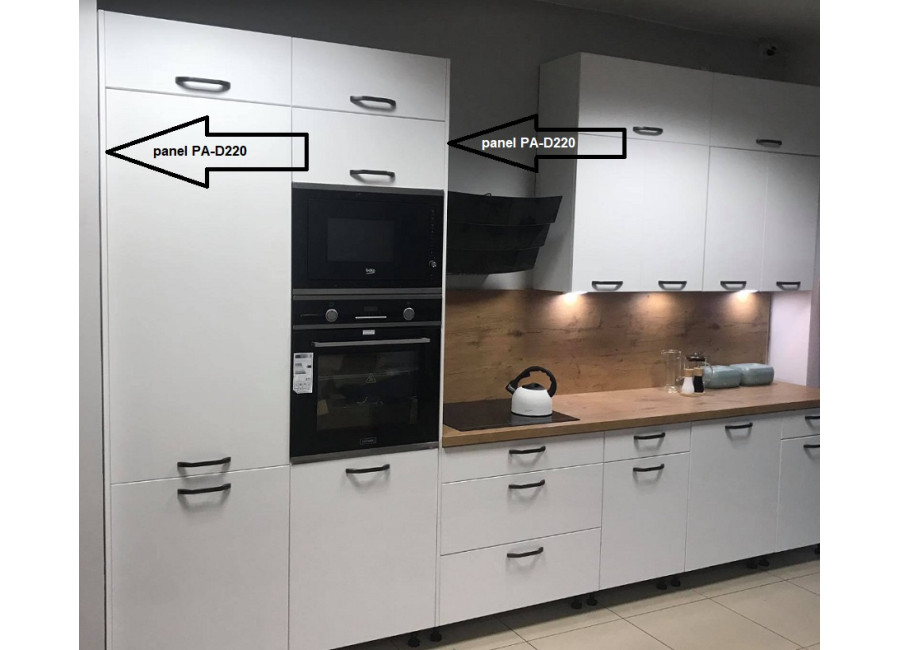 - panel PA-D220, rozmer: 2196X579mm, určený pre potravinové skrinky vo výške 207 cm + 23 cm nadstavec (nezakrýva 10cm nožičky).