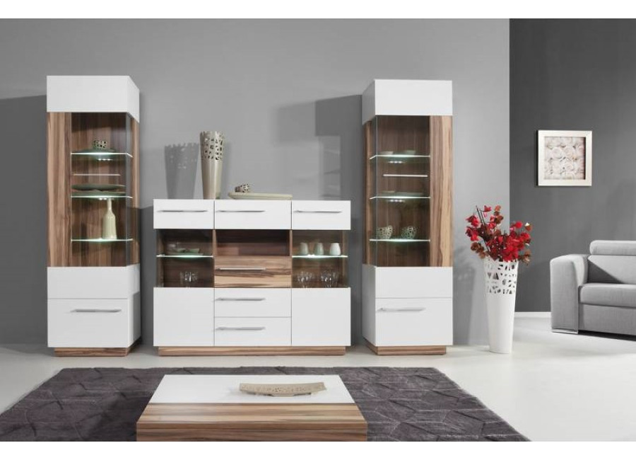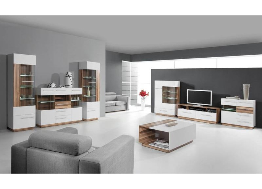 Nábytok MONSUN má jedinečný dizajn. Spojenie moderného tvaru a nového farebného prevedenia zaujme každého náročného zákazníka. Vyskladajte si obývaciu stenu zo sektorových skriniek. V ponuke v dvoch farebných kombináciách.