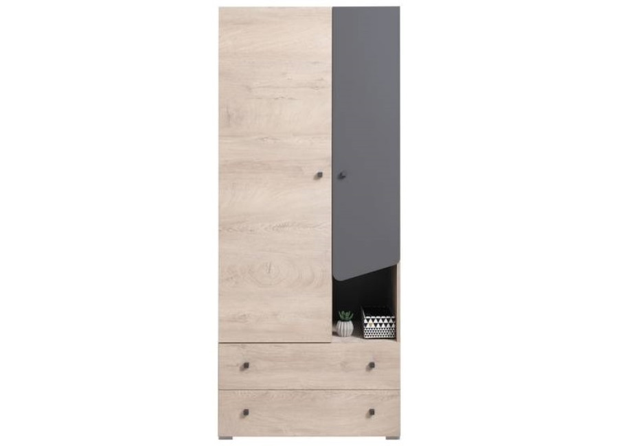 Sektorovým nábytkom DONA môžete zariadiť detskú aj študentskú izbu pre starších. Poskytuje veľa úložného priestoru na uloženie kníh, hračiek a oblečenia. Moderná kombinácia farieb vytvára v miestnosti útulnú a príjemnú atmosféru.