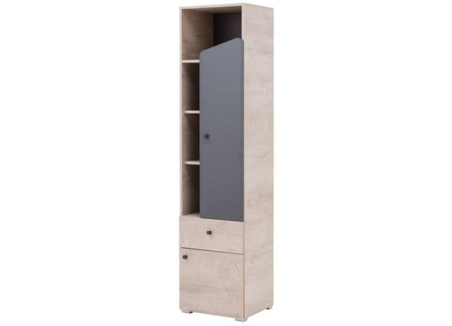 Sektorovým nábytkom DONA môžete zariadiť detskú aj študentskú izbu pre starších. Poskytuje veľa úložného priestoru na uloženie kníh, hračiek a oblečenia. Moderná kombinácia farieb vytvára v miestnosti útulnú a príjemnú atmosféru.