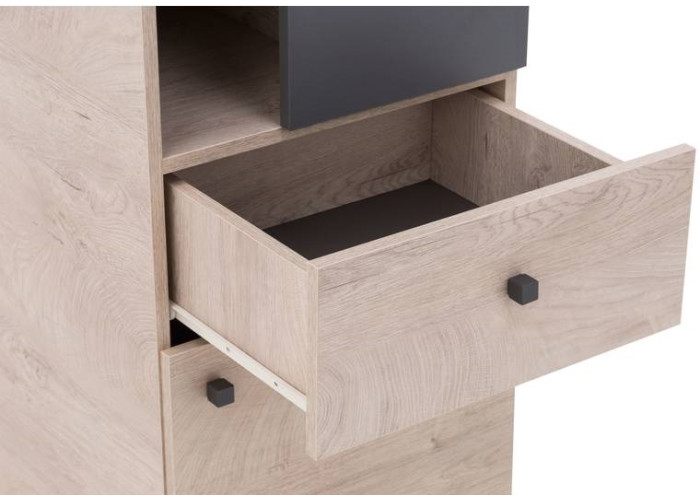 Sektorovým nábytkom DONA môžete zariadiť detskú aj študentskú izbu pre starších. Poskytuje veľa úložného priestoru na uloženie kníh, hračiek a oblečenia. Moderná kombinácia farieb vytvára v miestnosti útulnú a príjemnú atmosféru.