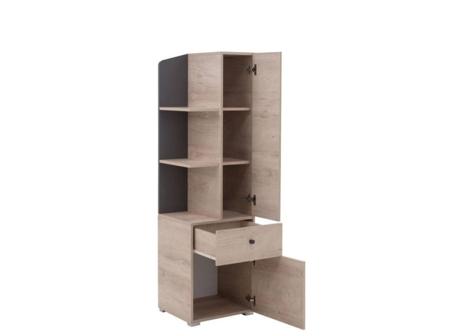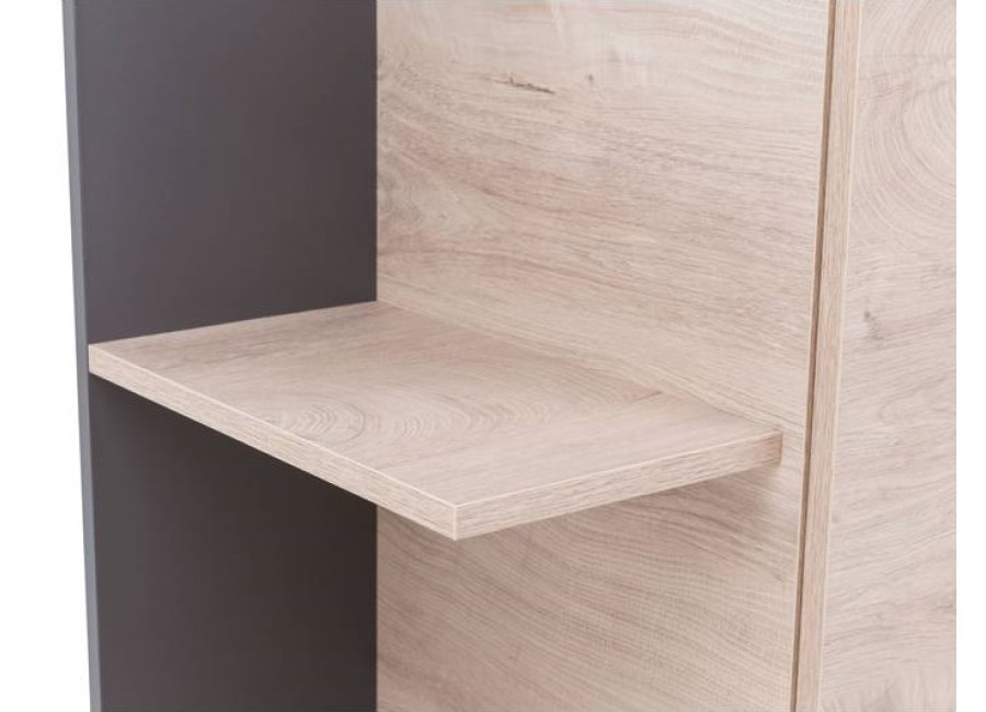 Sektorovým nábytkom DONA môžete zariadiť detskú aj študentskú izbu pre starších. Poskytuje veľa úložného priestoru na uloženie kníh, hračiek a oblečenia. Moderná kombinácia farieb vytvára v miestnosti útulnú a príjemnú atmosféru.