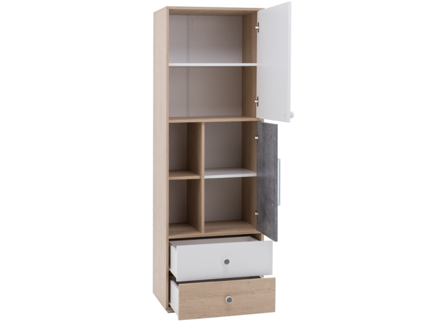 Sektorovým nábytkom SAFFI môžete zariadiť detskú aj študentskú izbu pre starších. Poskytuje veľa úložného priestoru na uloženie kníh, hračiek a oblečenia. Moderná kombinácia farieb vytvára v miestnosti útulnú a príjemnú atmosféru.