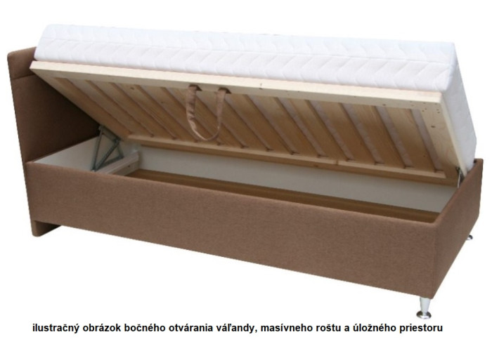 Kvalitná čalúnená posteľ 90x200 s výklopným masívnym roštom, bez matraca, od slovenského výrobcu: