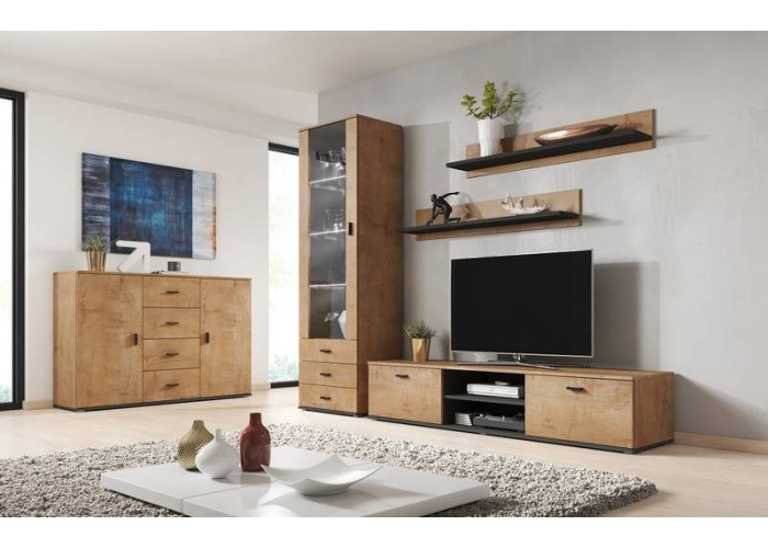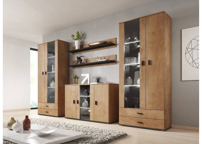 Sektorový nábytok SAMARA má jednoduchý dizajn. Farebné prevedenie dub lefkas vytvára v miestnosti príjemnú atmosféru. Nábytok je vyrobený z laminovanej drevotriesky.