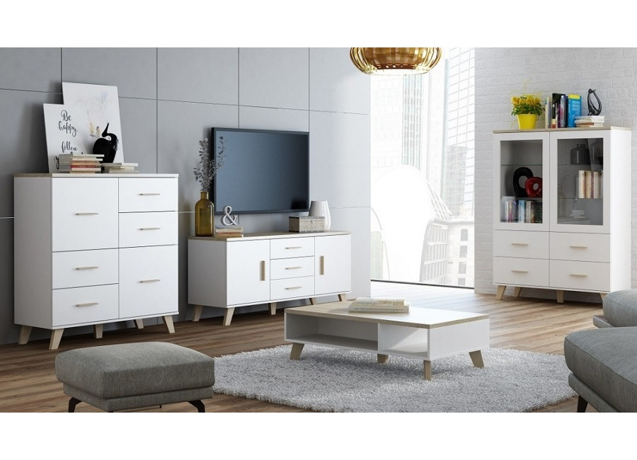 Milovníci škandinávskeho štýlu ocenia kolekciu nábytku ELIS, ktorá sa nesie v tomto atraktívnom štýle. Biele telo nábytku v kombinácii s nohami, vrchnou doskou a úchytkami vo farebnom prevedení dubu sonoma zahrejú každú izbu vybavenú s týmto nábytkom. Kolekcia obsahuje všetky potrebné prvky na zariadenie obývačky, no samozrejme si niektoré prvky viete umiestniť v spálni alebo v predsieni a v neposlednom rade v detskej izbe.