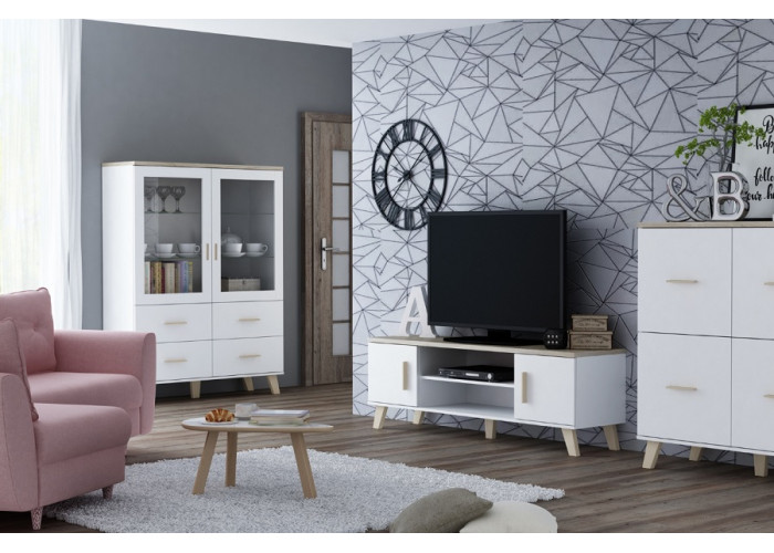 Milovníci škandinávskeho štýlu ocenia kolekciu nábytku ELIS, ktorá sa nesie v tomto atraktívnom štýle. Biele telo nábytku v kombinácii s nohami, vrchnou doskou a úchytkami vo farebnom prevedení dubu sonoma zahrejú každú izbu vybavenú s týmto nábytkom. Kolekcia obsahuje všetky potrebné prvky na zariadenie obývačky, no samozrejme si niektoré prvky viete umiestniť v spálni alebo v predsieni a v neposlednom rade v detskej izbe.