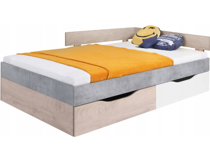 SKIP biela/betón/dub 16, jednolôžková študentská posteľ 120x200 cm