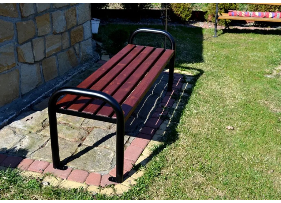 Táto lavička s opierkami je vyrobená z oceľovej rúry (priemer 48mm, hrúbka 2mm), čo zaručuje stabilitu a trvácnosť. Konštrukcia je ošetrená čiernym antikoróznym náterom s práškovým vypaľovaním pre zvýšenú ochranu. Kovové časti sú pred lakovaním pozinkované, čo významne zvyšuje odolnosť voči korózii. Na požiadanie vieme aplikovať akúkoľvek farbu podľa Vašich predstáv (je nás potrebné predtým kontaktovať).