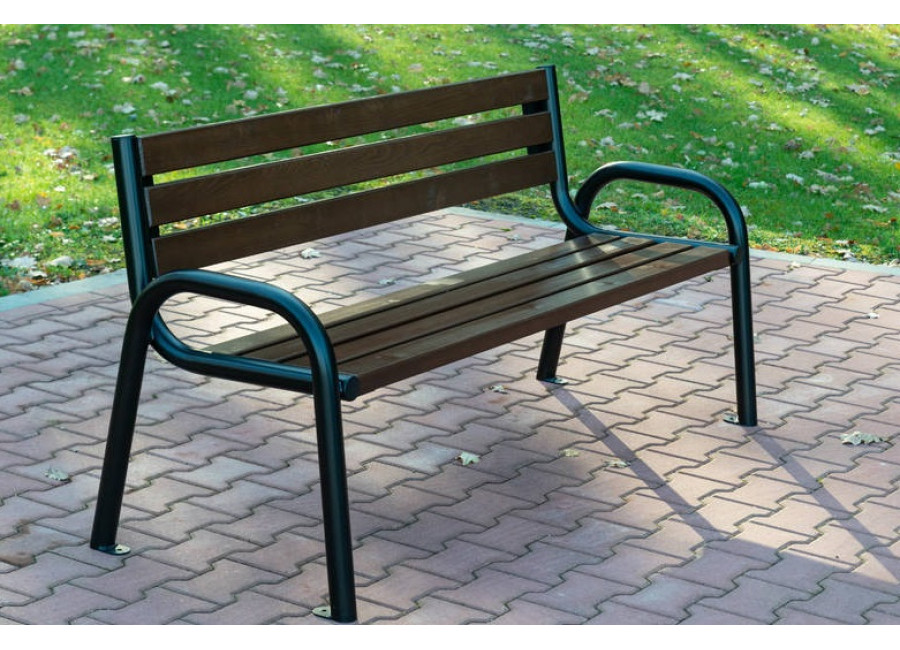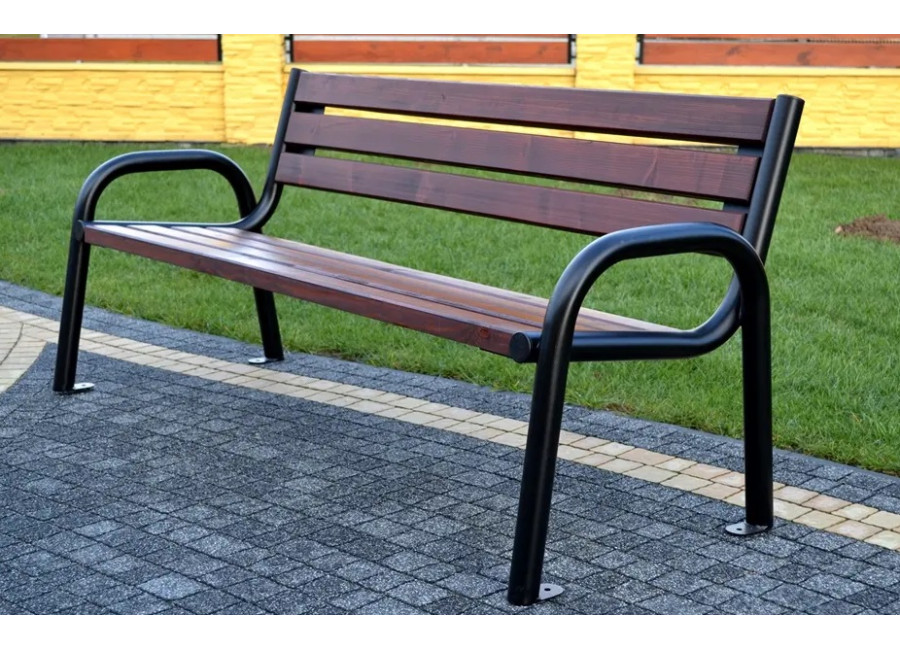 Táto parková lavička s operadlom je vyrobená z oceľovej rúry s priemerom 48mm a hrúbkou 2mm, čo jej zaručuje stabilitu a dlhú trvanlivosť. Konštrukcia je natretá čiernou antikoróznou farbou s práškovým poťahom pre extra ochranu voči poveternostným podmienkam. Všetky oceľové časti sú pred natretím vždy pozinkované, čo je overený spôsob ako zvýšiť odolnosť voči korózii, poskytujúc ochranu pred hrdzou. Na požiadanie je možné oceľ nalakovať na akúkoľvek farbu z palety RAL (kontaktujte nás pre bližšie informácie).