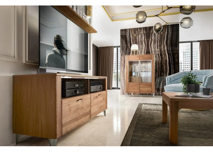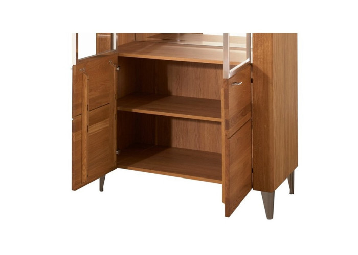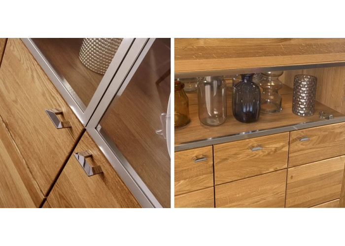 Predná časť (dvierka a čielka zásuviek) nábytku LATINA je vyrobená z masívneho kartáčovaného dreva, vonkajší korpus skriniek je z dubovej dýhy, vnútorná časť je vyrobená z drevotriesky, povrch je upravený ekologickým olejom, čo zabezpečuje zdravotnú nezávadnosť nábytku.