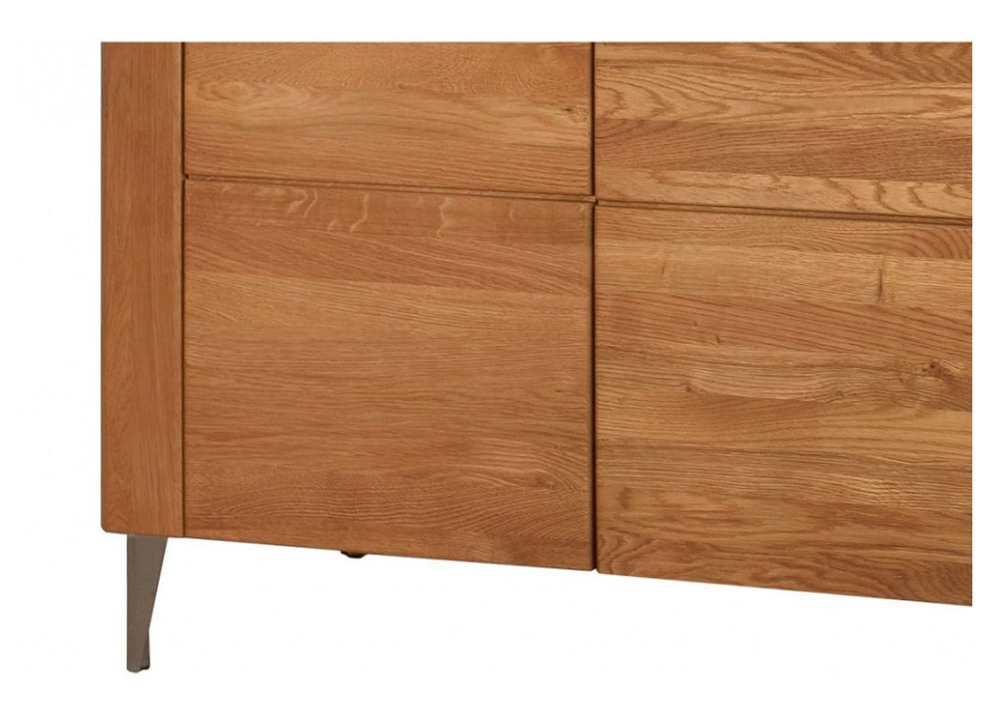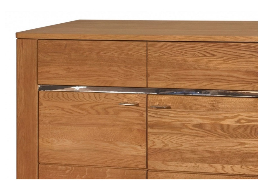 Predná časť (dvierka a čielka zásuviek) nábytku LATINA je vyrobená z masívneho kartáčovaného dreva, vonkajší korpus skriniek je z dubovej dýhy, vnútorná časť je vyrobená z drevotriesky, povrch je upravený ekologickým olejom, čo zabezpečuje zdravotnú nezávadnosť nábytku.