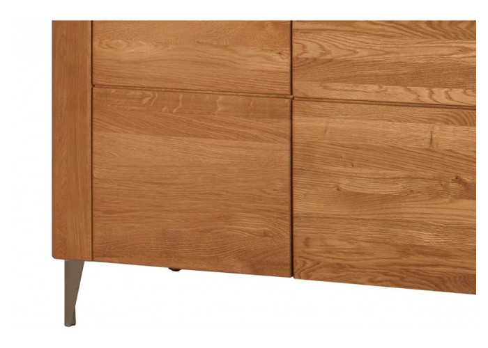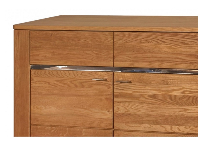 Predná časť (dvierka a čielka zásuviek) nábytku LATINA je vyrobená z masívneho kartáčovaného dreva, vonkajší korpus skriniek je z dubovej dýhy, vnútorná časť je vyrobená z drevotriesky, povrch je upravený ekologickým olejom, čo zabezpečuje zdravotnú nezávadnosť nábytku.