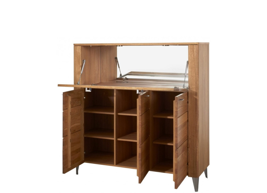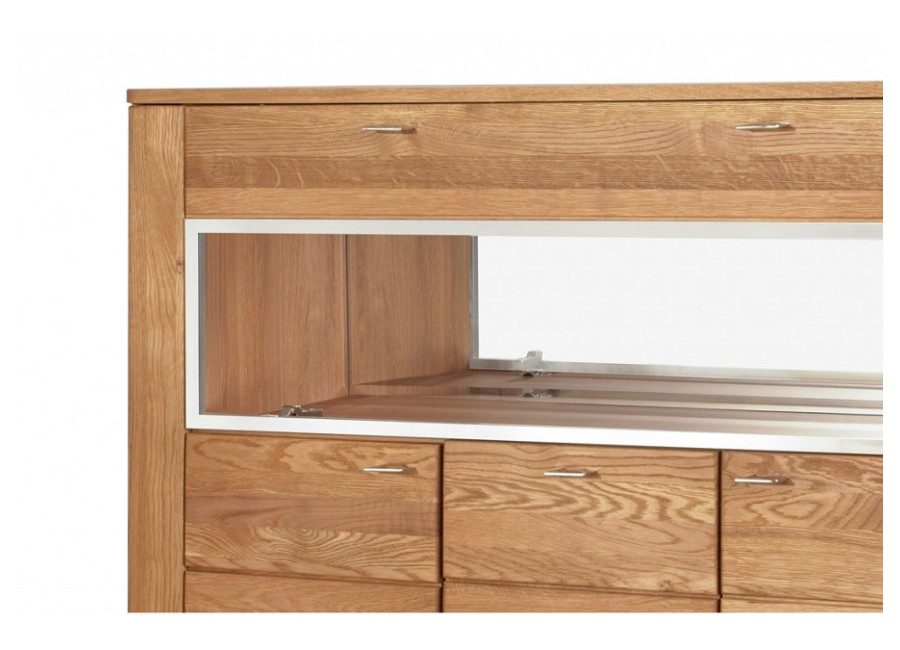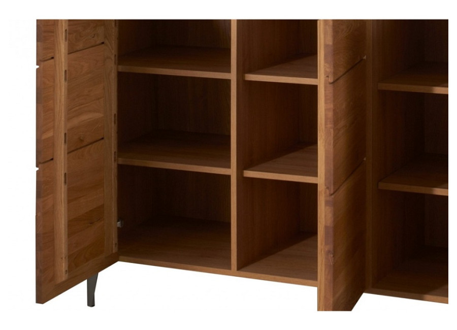 Predná časť (dvierka a čielka zásuviek) nábytku LATINA je vyrobená z masívneho kartáčovaného dreva, vonkajší korpus skriniek je z dubovej dýhy, vnútorná časť je vyrobená z drevotriesky, povrch je upravený ekologickým olejom, čo zabezpečuje zdravotnú nezávadnosť nábytku.