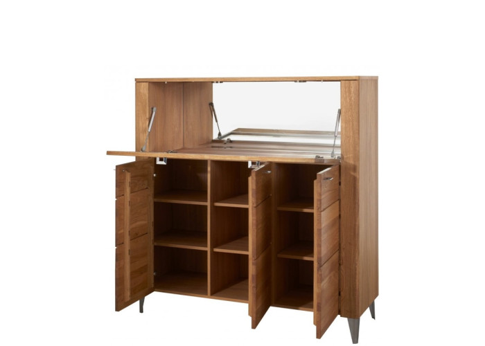 Predná časť (dvierka a čielka zásuviek) nábytku LATINA je vyrobená z masívneho kartáčovaného dreva, vonkajší korpus skriniek je z dubovej dýhy, vnútorná časť je vyrobená z drevotriesky, povrch je upravený ekologickým olejom, čo zabezpečuje zdravotnú nezávadnosť nábytku.