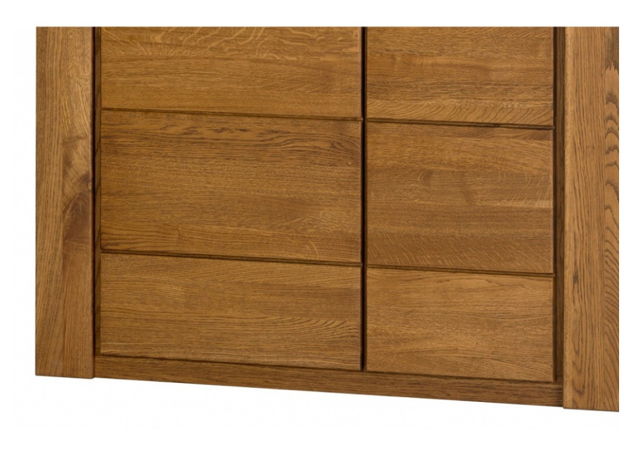 Predná časť (dvierka a čielka zásuviek) nábytku VELVET je vyrobená z masívneho dreva, vonkajší korpus skriniek je z dubovej dýhy, vnútorná časť je vyrobená z drevotriesky, povrch je upravený ekologickým olejom, čo zabezpečuje zdravotnú nezávadnosť nábytku.