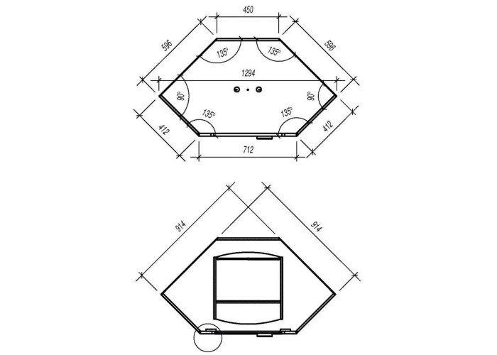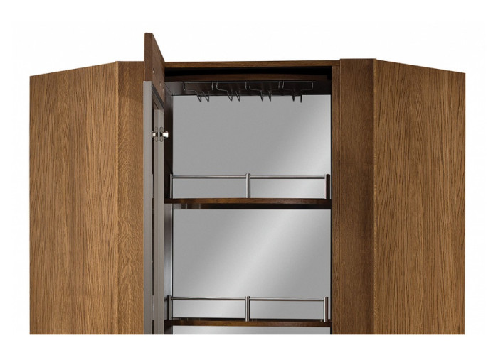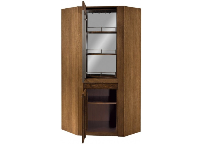 Vitrína slúži ako barová skrinka, má vo vrchnej časti otočné vnútro, z dvoch strán je zrkadlo, na tretej strane sú drevené police a na štvrtej strane je zrkadlo s kovovými poličkami na fľaše a poháre.