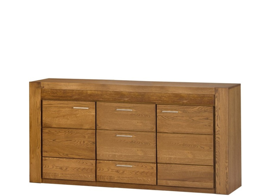 Predná časť (dvierka a čielka zásuviek) nábytku VELVET je vyrobená z masívneho dreva, vonkajší korpus skriniek je z dubovej dýhy, vnútorná časť je vyrobená z drevotriesky, povrch je upravený ekologickým olejom, čo zabezpečuje zdravotnú nezávadnosť nábytku.