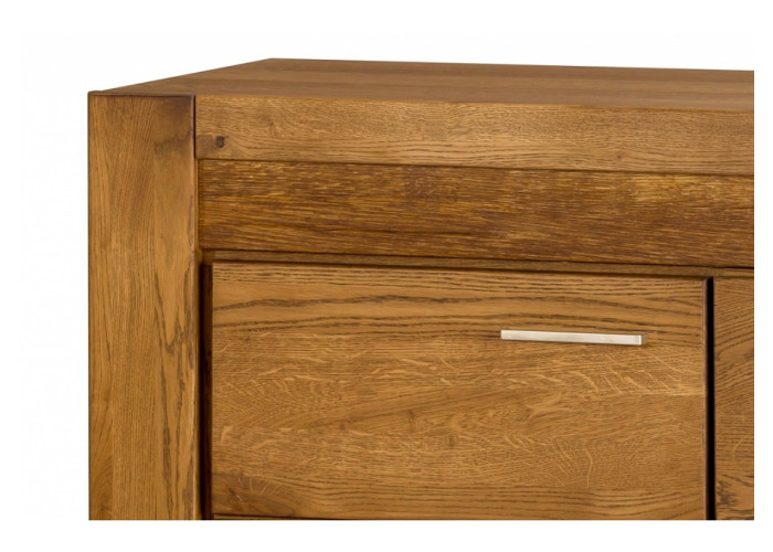 Predná časť (dvierka a čielka zásuviek) nábytku VELVET je vyrobená z masívneho dreva, vonkajší korpus skriniek je z dubovej dýhy, vnútorná časť je vyrobená z drevotriesky, povrch je upravený ekologickým olejom, čo zabezpečuje zdravotnú nezávadnosť nábytku.