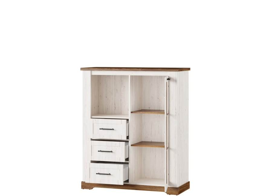 Sektorový nábytok COUNTRY má jedinečný dizajn, ktorý charakterizuje výrazná kresba dreva, vhodná do provensálskeho štýlu. Skrinky majú kovové čierne úchytky. Nábytkom Country môžete zariadiť obývaciu izbu alebo jedáleň, ktorá bude vyzerať štýlovo a funkčne.
