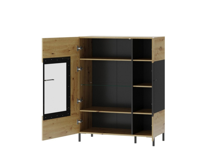 Sektorový nábytok LUCAS má elegantný dizajn, ktorý spája farbu dub artisan s čiernou matnou. Môžete si tak vytvoriť útulnú a modernú obývaciu zostavu alebo jedáleň.