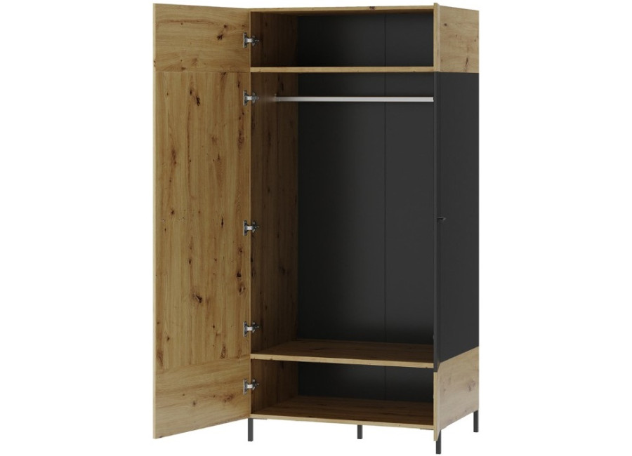 Sektorový nábytok LUCAS má elegantný dizajn, ktorý spája farbu dub artisan s čiernou matnou. Môžete si tak vytvoriť útulnú a modernú obývaciu zostavu alebo jedáleň.