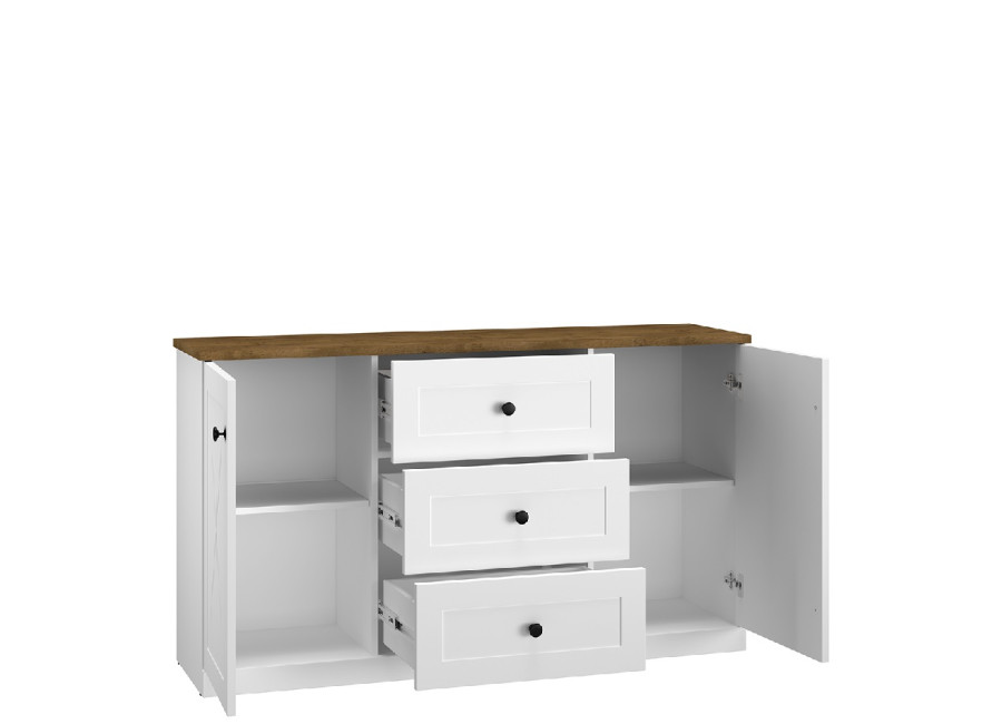 Kolekcia LILLE je inšpirovaná prírodou, v krásnom klasickom provensálskom štýle. Dvierka majú decentný ornament, vrchné dosky sú vyrobené vo farbe dub lefkas. Zásuvky majú funkciu plného výsuvu, dvierka tlmené zatváranie.