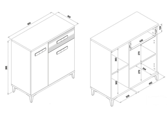 Sektorový nábytok SNOBI sa vyrába v módnej farbe dub craft zlatý v kombinácií s bielym leskom. Charakterizujú ho vrúbkované čelá zásuviek a drevené úchytky. Hrúbka spodnej a hornej dosky skriniek je 22mm, použité sú ABS hrany v hrúbke 0,5mm a 1,5mm, dvierka a čielka zásuviek sú z MDF materiálu. Dvierka majú tiché zatváranie, zásuvky sú s plnovýsuvom a skrinky sú na 10 cm nožičkách.