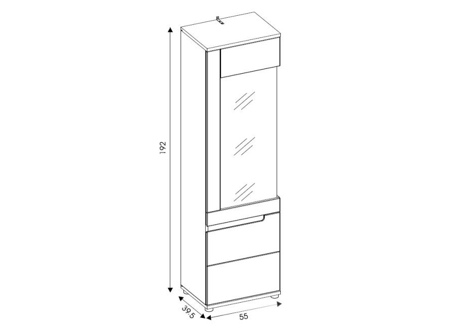 - vitrína v šírke 55 cm,