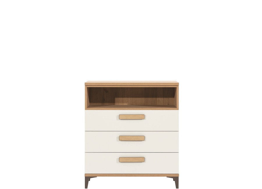 Detská izba KUBO v novom farebnom prevedení dub nagano s bielym leskom. Vyrába sa z laminovanej drevotriesky, s 0,5m a 1,5mm ABS hranami. Obrovskou výhodou sú nožičky, ktoré Vám uľahčia upratovanie. Zásuvky sú s plnovýsuvom.