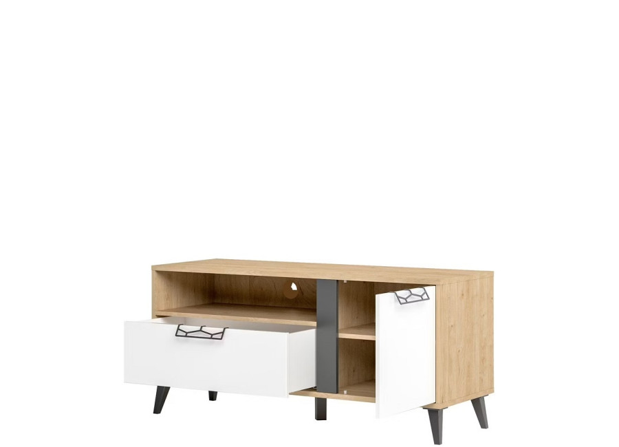 Kolekcia MOET spája prvky škandinávskeho a moderného štýlu. Kombinuje bielu farbu s americkým orechom Jackson a grafitovými lištami a výraznými kovovými úchytkami. Pri upratovaní určite oceníte skrinky na nožičkách.