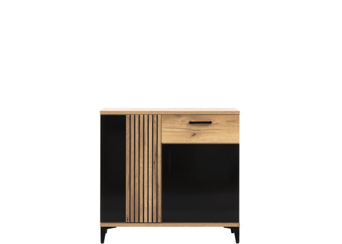 Komoda má 1 zásuvku s guľôčkovými výsuvmi GTV, ktoré umožňujú plný výsuv, a dvomi dvierkami, za ktorými sa nachádzajú štyri praktické úložné priestory.