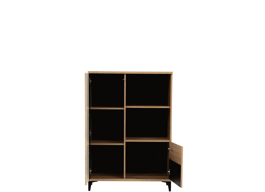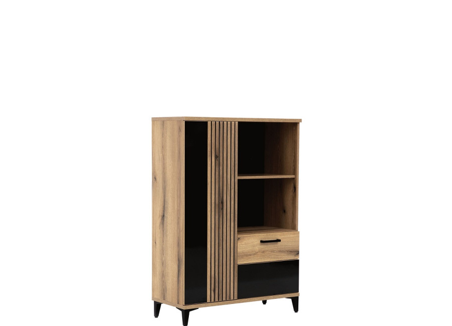 Skrinka ARIS AS05 je praktickým a štýlovým doplnkom, ktorý nájde svoje miesto v obývačke, pracovni alebo spálni. Otvorené police ponúkajú ideálny priestor na vystavenie vašej zbierky kníh, vinylových platní, obľúbených suvenírov či dekorácií, zatiaľ čo uzavretý úložný priestor umožňuje prehľadne usporiadať oblečenie, dokumenty alebo iné potrebné veci.