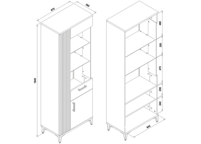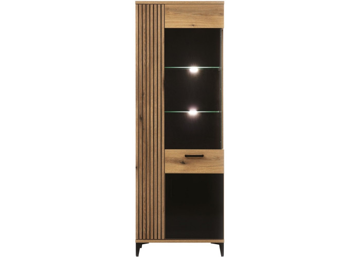 Vitrína ARIS AS08 predstavuje dokonalé riešenie pre obývačku, jedáleň alebo akýkoľvek iný priestor, kde chcete spojiť funkčnosť s estetickým vzhľadom. Jej interiér ponúka dostatok miesta na uloženie jedálenských súprav, praktických domácich potrieb či iných predmetov, ktoré potrebujete mať vždy po ruke. Sklenená časť vitríny je ideálna na vystavenie elegantných pohárov, dekoračného porcelánu alebo iných cenných kúskov, ktoré si zaslúžia byť v centre pozornosti.
