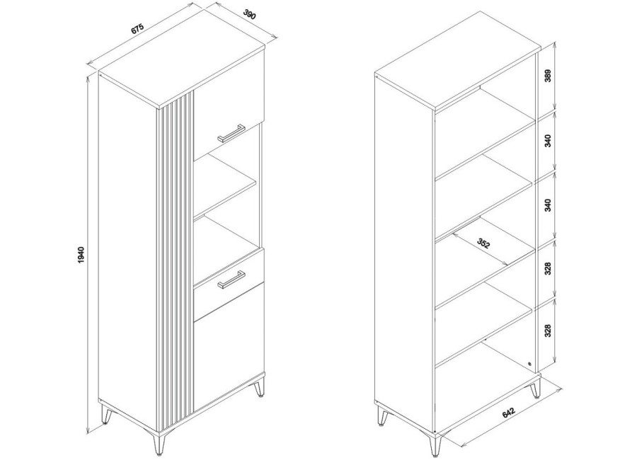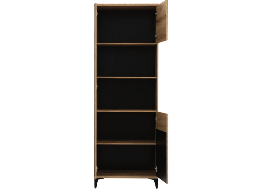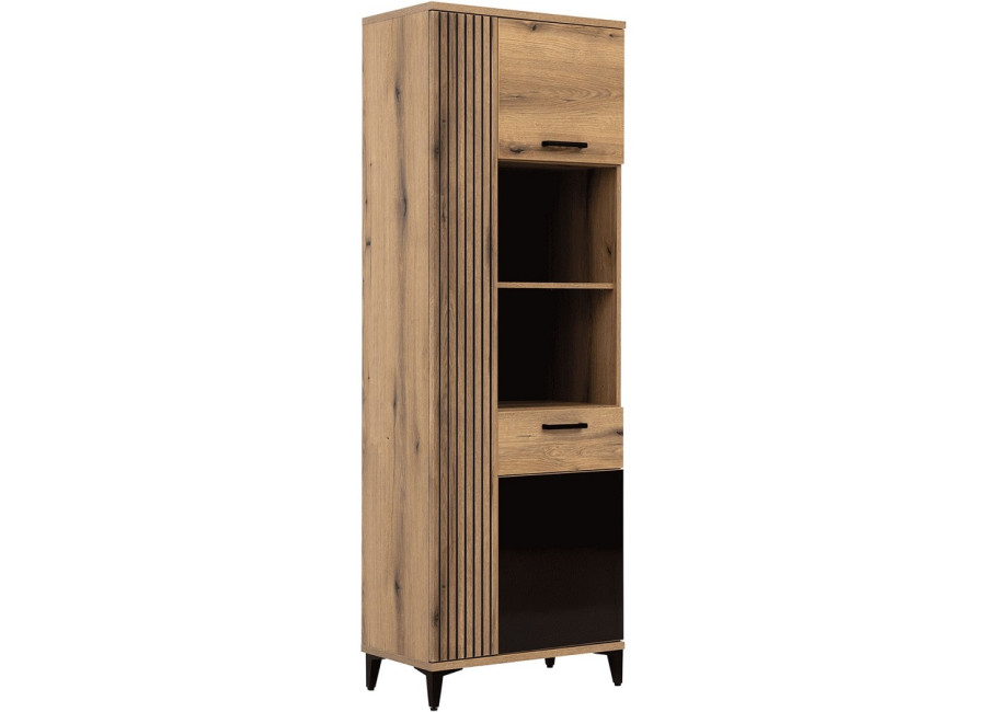 Regál ARIS AS09 je praktickým a štýlovým doplnkom, ktorý nájde svoje miesto v obývačke, spálni či akejkoľvek inej miestnosti Vášho domova. Otvorené police ponúkajú ideálny priestor na vystavenie vašej zbierky kníh, platní, obľúbených suvenírov alebo dekorácií, zatiaľ čo uzavretý úložný priestor poskytuje dokonalé riešenie na usporiadanie oblečenia, dokumentov či iných nevyhnutností.