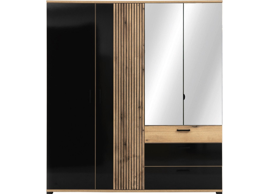 Nábytok ARIS je kvalitný a štýlový nábytok vhodný do obývacej izby, jedálne a spálne. Kolekcia kombinuje príjemnú farbu dreva a čierny lesk, na MDF dvierkach sú dominantné pásiky, ktoré pripomínajú obľúbené lamely. Veľkou výhodou sú aj plastové regulovateľné nožičky, ktoré uľahčujú upratovanie.