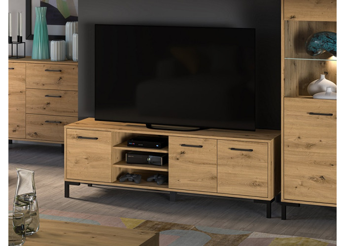 Nábytok NEVIO je moderná a elegantná kolekcia sektorového nábytku. Výrazná kombinácia dubu artisan s čiernymi úchytkami a nožičkami je dokonalým riešením zariadenia miestnosti.