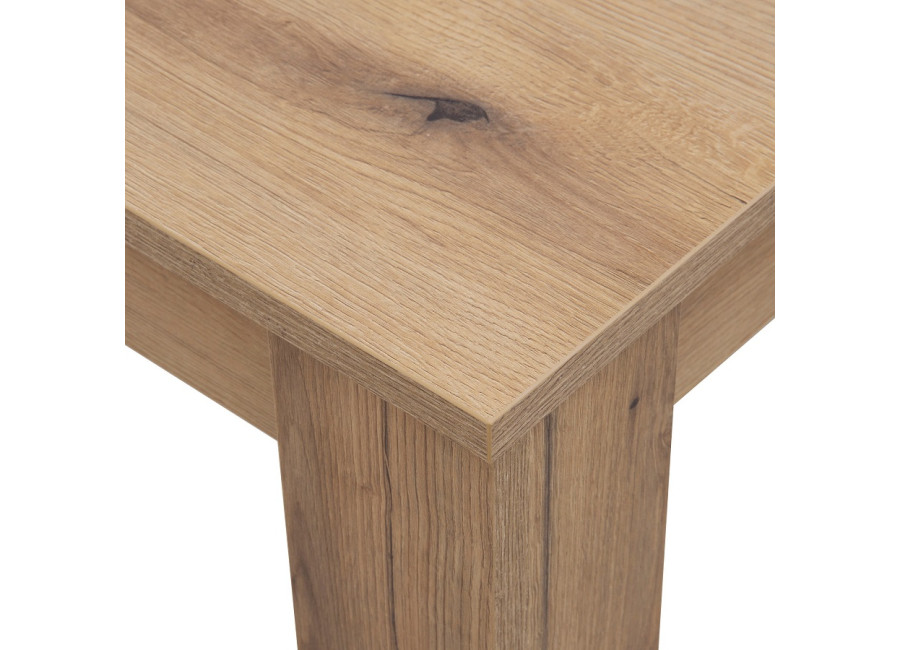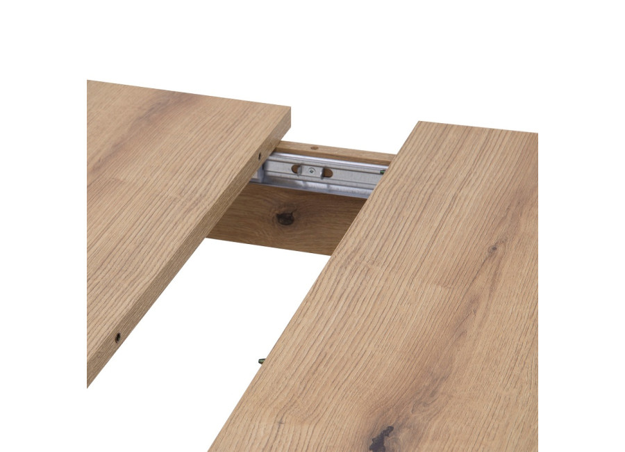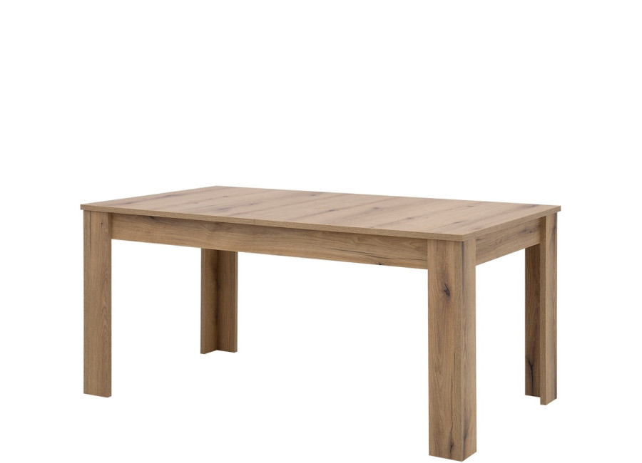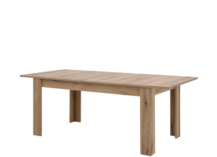 Rozkladací jedálenský stôl ST04 je elegantný kus nábytku, ktorý prirodzene zapadne do moderných interiérov a stane sa štýlovým aj funkčným centrom kuchyne, jedálne či domácej pracovne. V základnom stave ponúka šírku 160 cm, no vďaka prídavnej vložke ho jednoducho rozložíte až na 200 cm, čím získate viac priestoru na spoločné stolovanie aj príležitostné stretnutia. Laminovaný povrch s kresbou dubového dreva v dekore dub evoke vnáša do priestoru hrejivý rustikálny akcent a umožňuje stolu vyniknúť samostatne aj v kombinácii s nábytkom z kolekcie NOEL.