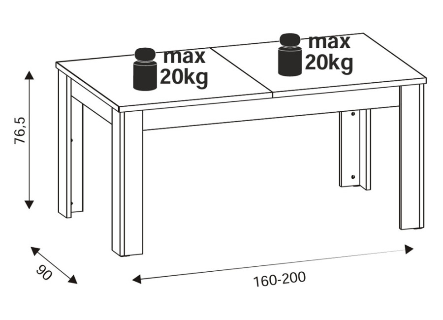 NOEL ST04, rozkladací jedálenský stôl 160-200x90 cm