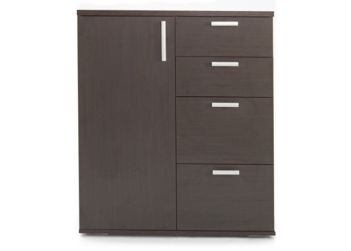 Moderná komoda REA OTTAWA UP 1 je pomyselne zvisle rozdelená na dve časti. Ľavá časť je uzatvárateľná dvierkami, za ktorými sa nachádzajú dve poličky. Pravá časť pozostáva zo zásuviek, pričom zo spodu sú dve vyššie a zvrchu dve nižšie. Univerzálna komoda je určená do každej miestnosti - do spálne, do obývačky, do detskej izby, do predsiene alebo do haly. Komoda do spálne je vyrobená z kvalitnej laminovanej drevotrieskovej dosky. Použité hladké a tiché kovanie na šuflíkoch komody vysunie celú zásuvku.