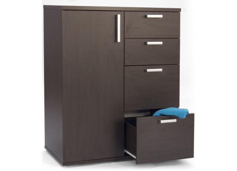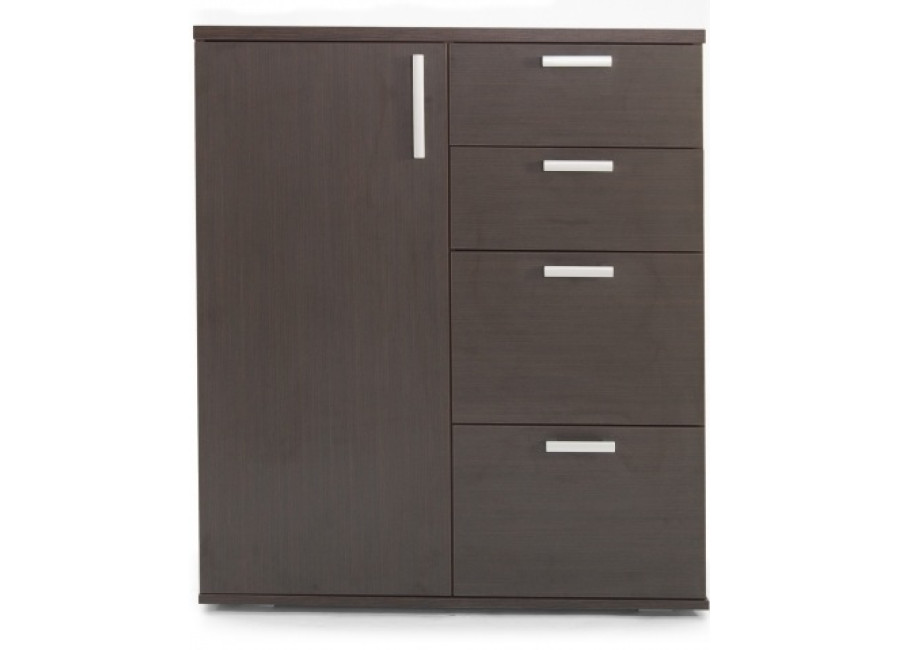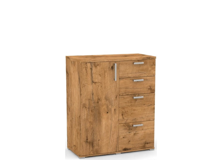 Moderná komoda REA OTTAWA UP 1 je pomyselne zvisle rozdelená na dve časti. Ľavá časť je uzatvárateľná dvierkami, za ktorými sa nachádzajú dve poličky. Pravá časť pozostáva zo zásuviek, pričom zo spodu sú dve vyššie a zvrchu dve nižšie. Univerzálna komoda je určená do každej miestnosti - do spálne, do obývačky, do detskej izby, do predsiene alebo do haly. Komoda do spálne je vyrobená z kvalitnej laminovanej drevotrieskovej dosky. Použité hladké a tiché kovanie na šuflíkoch komody vysunie celú zásuvku.