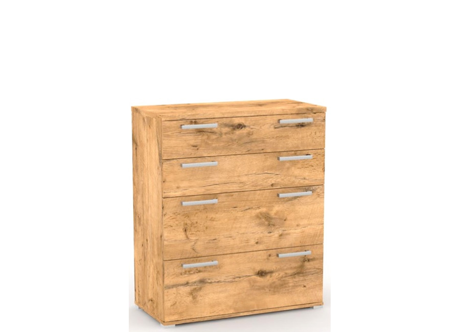 Moderná komoda REA OTTAWA UP 2 pozostáva zo štyroch samostatných šuflíkov, ktoré sú navrhnuté pre poriadok vo vašich osobných veciach. Univerzálna komoda so šuflíkmi je určená do každej miestnosti - do spálne, do obývačky, do detskej izby, do predsiene alebo do haly. Komoda do spálne je vyrobená z kvalitnej laminovanej drevotrieskovej dosky. Použité hladké a tiché kovanie na šuflíkoch komody vysunie celú zásuvku.