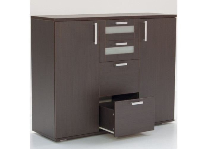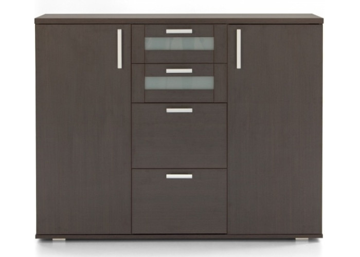 Praktická komoda REA OTTAWA UP 3 je zvislo rozdelená na tri časti. Ľavá a pravá časť je uzatvárateľná dvierkami do strán, pod ktorými sa nachádzajú vždy dve poličky. Stredná časť je doplnená aj praktickými šuflíkmi, pričom vrchné dva šuflíky sú kombinované s mliečnym plexisklom. Univerzálna komoda so šuflíkmi je určená do každej miestnosti - do spálne, do obývačky, do detskej izby, do predsiene alebo do haly. Komoda do spálne je vyrobená z kvalitnej laminovanej drevotrieskovej dosky. Použité hladké a tiché kovanie na šuflíkoch komody vysunie celú zásuvku.