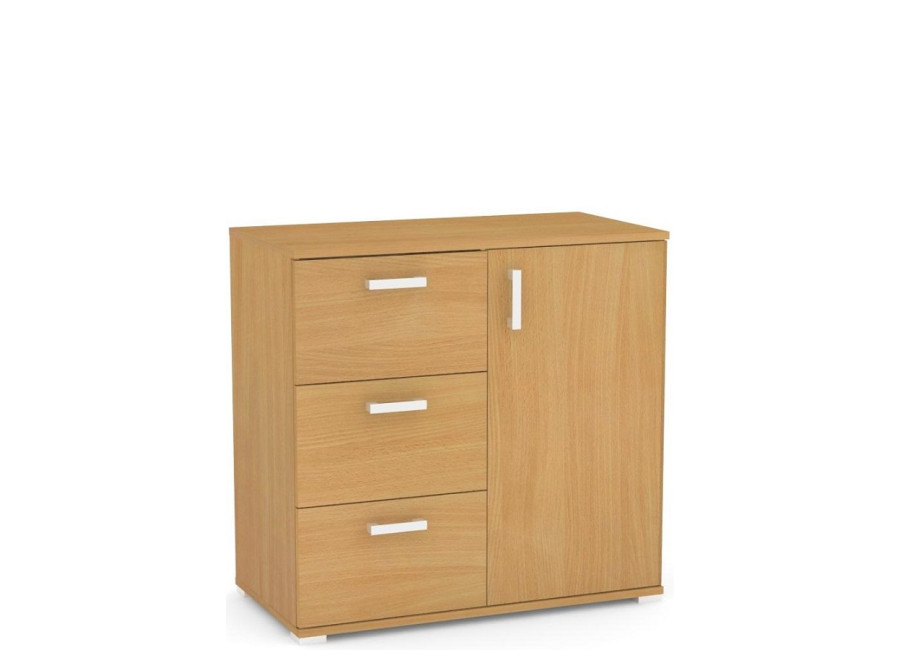 Komoda REA SISA 2 ponúka tri praktické zásuvky a dvierka do ktorejkoľvek miestnosti v domácnosti. Šikovná komoda je vyrobená z kvalitnej laminovanej drevotrieskovej dosky. V dvierkovej časti komody je jedna polica.