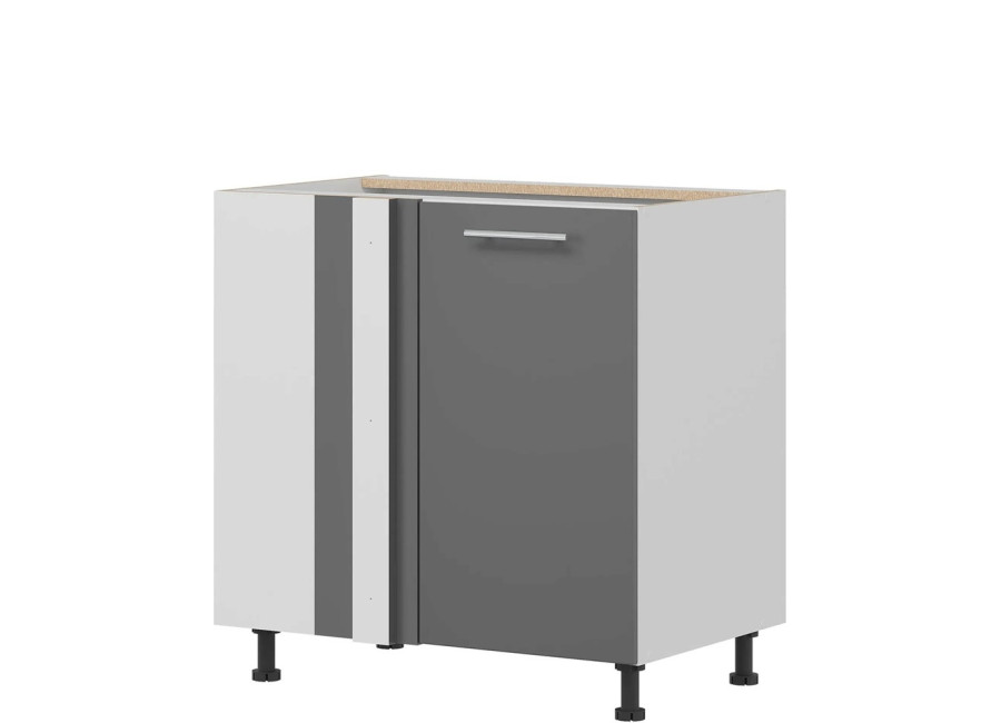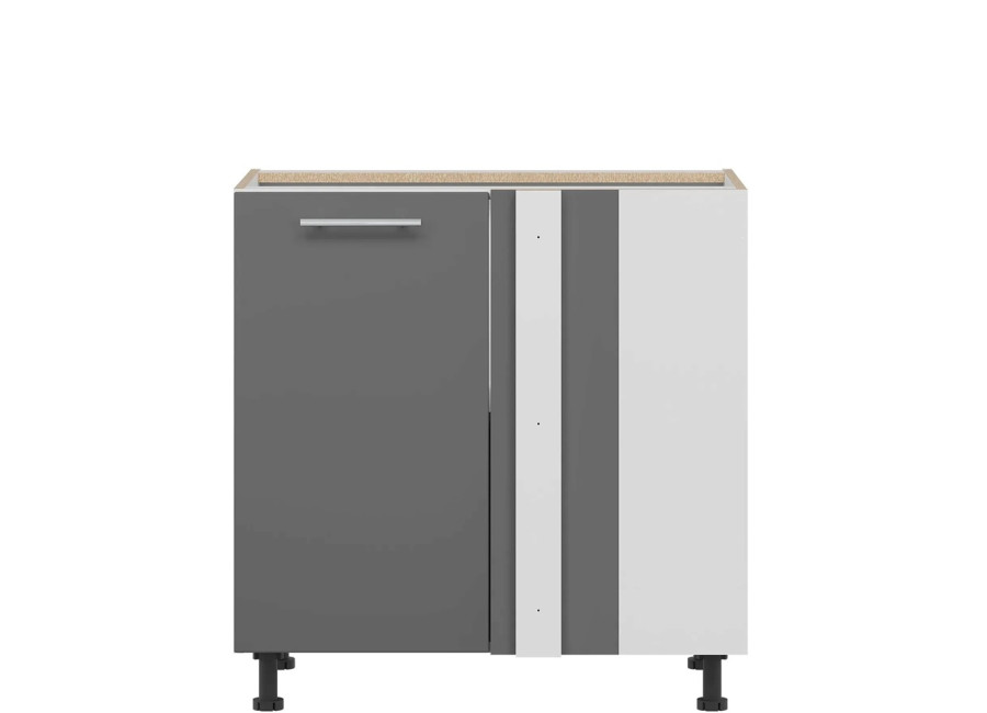 Rohová kuchynská skrinka Tiffany T25 je vynikajúcim riešením, ako efektívne využiť každý centimeter vašej kuchyne a získať úložný priestor aj v rohovej časti zostavy. Vnútro skrinky je rozdelené praktickou policou, ktorá vytvára dva samostatné úložné priestory, ideálne na prehľadné uloženie hrncov, misiek, kuchynského riadu či zásob potravín.