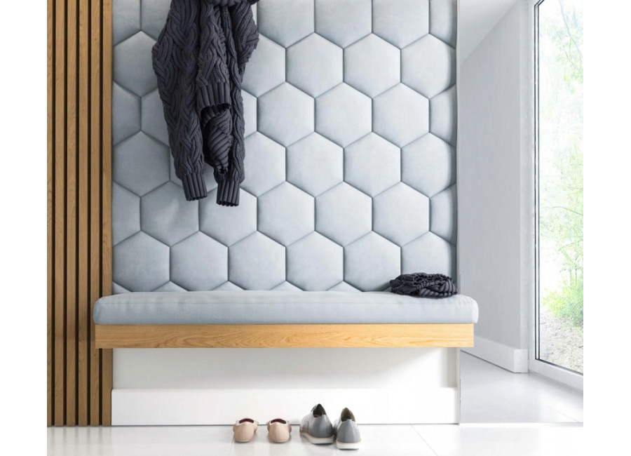 Základom je 0,8cm MDF doska, na ktorej je PUR pena v hrúbke 3 cm potiahnutá poťahovou látkou. Panely môžete na stenu nalepiť lepidlom (napr. Mamut) alebo na podkladovú dosku, ktorú ste predtým pripevnili na stenu (docielite tak špáry rovnakej farby).