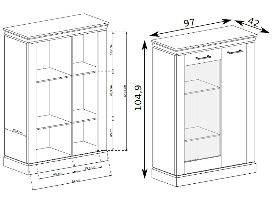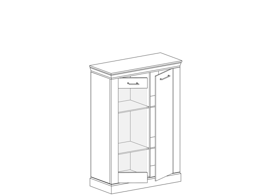 Sektorový nábytok s nádychom antickej architektúry. Nábytok ANTICA má zaujímavý dizajn, jedinečné frézovanie a patinu na ozdobných lištách. Vhodný je do obývacej izby, spálne aj kancelárie.