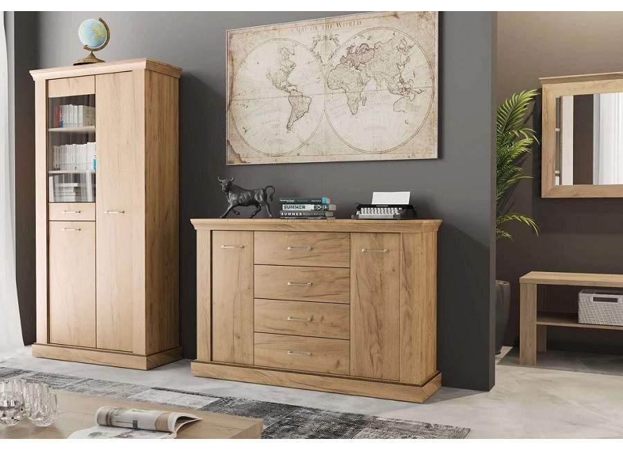Sektorový nábytok s nádychom antickej architektúry. Nábytok ANTICA má zaujímavý dizajn, jedinečné frézovanie a patinu na ozdobných lištách. Vhodný je do obývacej izby, spálne aj kancelárie.